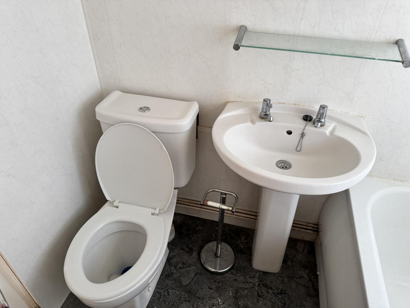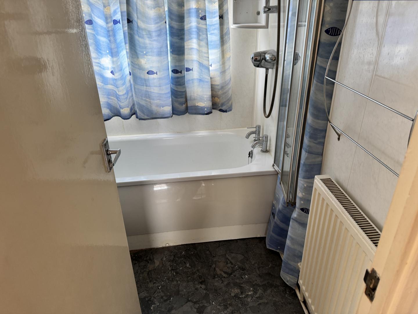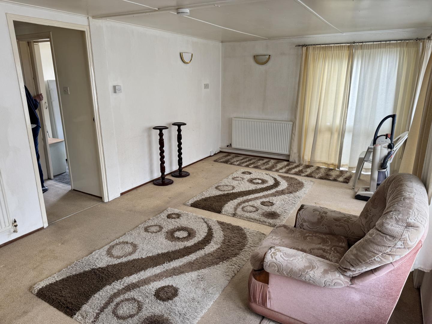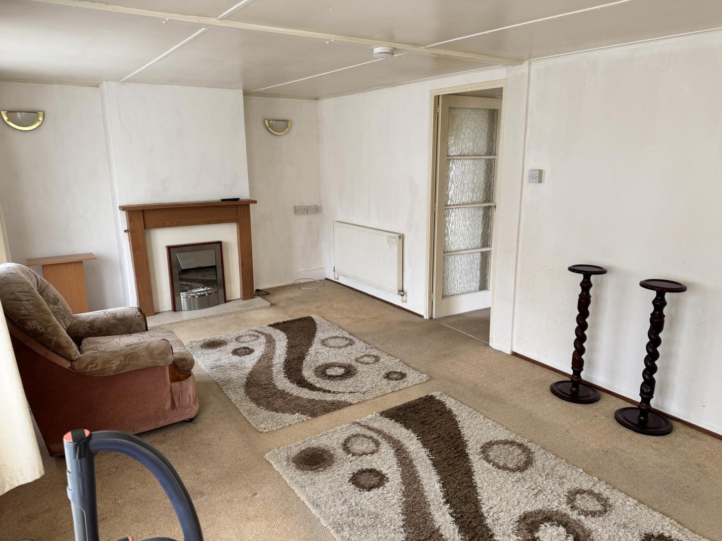 The home has a great layout with a cross lounge benefiting from plenty of natural light. An electric fire with a surround makes a great feature. The kitchen area has a good range of base and eye level units and appliances, mainly freestanding, along with a built in storage cupboard. Off of the kitchen there is a good sized room that could be used for a dining room, study or second bedroom. Leading out from the kitchen in to the hallway, the master bedroom is at the rear of the home. A family bathroom with a shower over the bath is also off the hallway